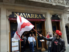 Presencia de las Juventudes de la Comunión Tradicionalista, en la Marcha patriótica por la Hispanidad en Barcelona, este 12 de Octubre, Fiesta de Nuestra Señora la Virgen del Pilar. Plaza Cataluña. Cataluña resiste al nazionalismo.